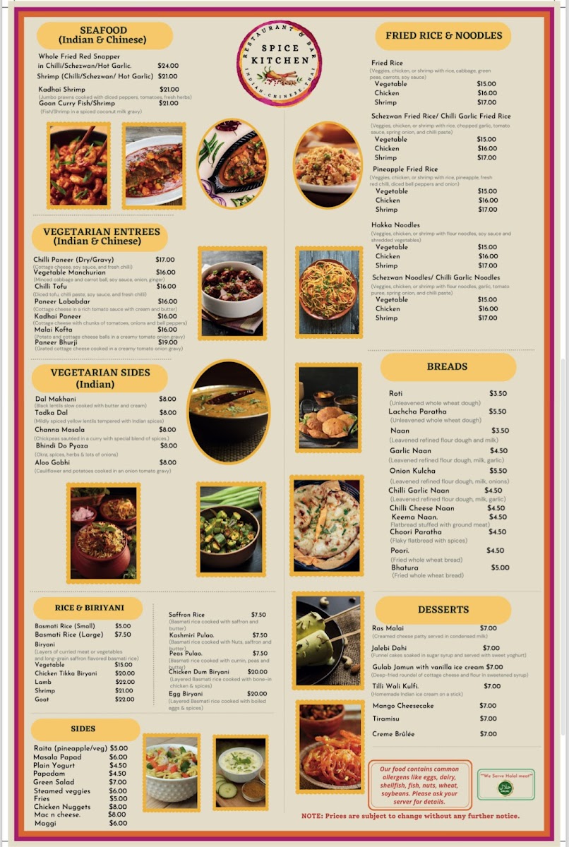The menu showcases a variety of offerings, including favorites like daal, chicken karahi, and the equally delicious Burrata Butter Chicken. One reviewer, Crash Palace, shared their experience with the Burrata Butter Chicken, praising the creamy and spicy tomato sauce enriched by fresh, ripe tomatoes. This balance of flavors is a testament to Spice Kitchen's commitment to quality and taste.